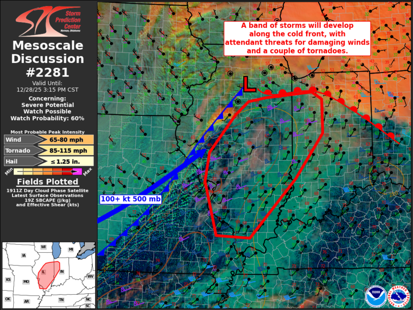 28 Dec US Mesoscale Discussions Storm Prediction Center Mesoscale Discussion 2281 Sunday, December 28, 2025 at 2:19 pm By chris 0 comments Continue reading
