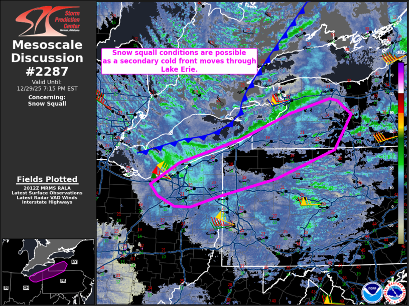 29 Dec US Mesoscale Discussions Storm Prediction Center Mesoscale Discussion 2287 Monday, December 29, 2025 at 3:16 pm By chris 0 comments Continue reading