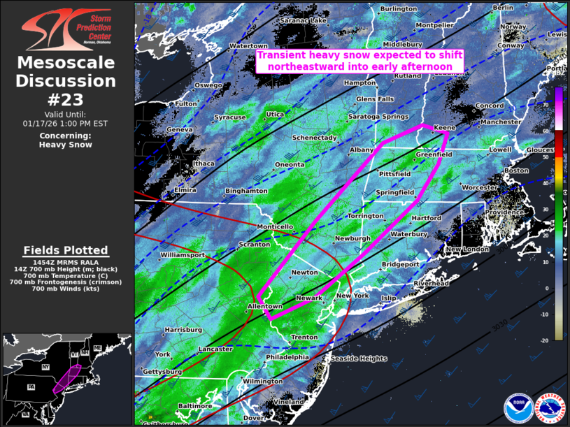 17 Jan US Mesoscale Discussions Storm Prediction Center Mesoscale Discussion 23 Saturday, January 17, 2026 at 9:56 am By chris 0 comments Continue reading