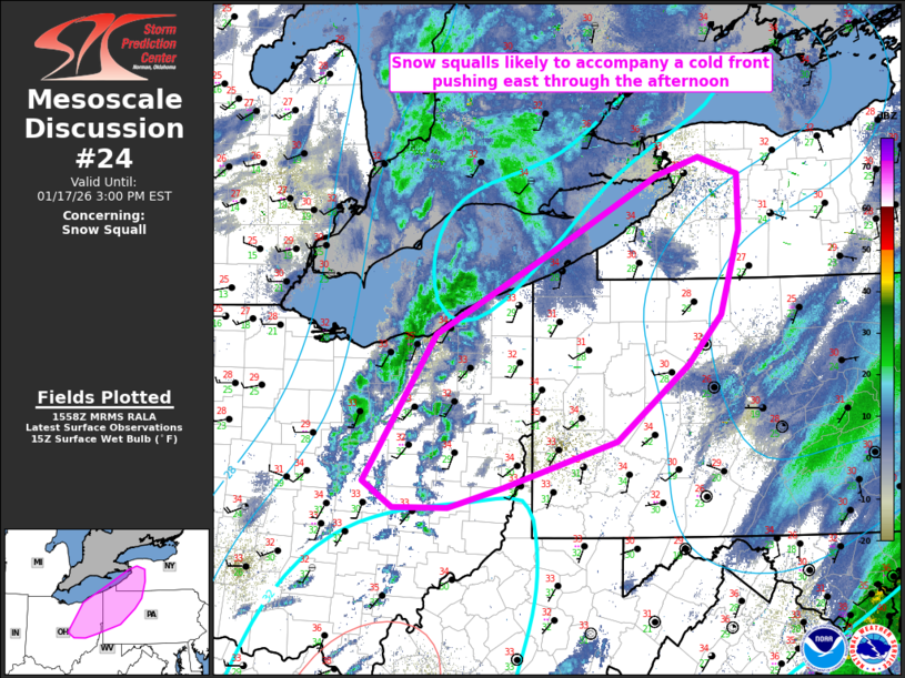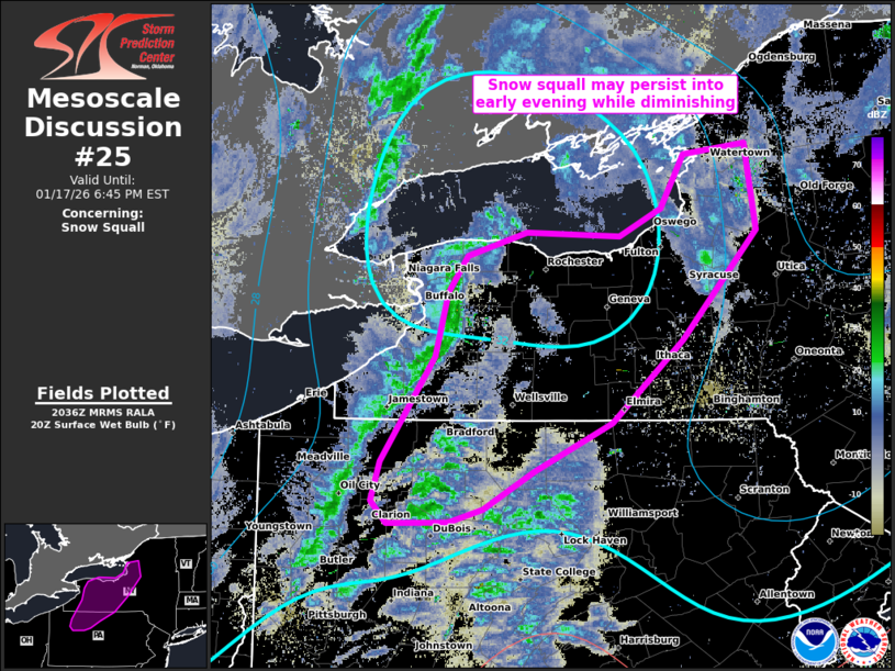 17 Jan US Mesoscale Discussions Storm Prediction Center Mesoscale Discussion 25 Saturday, January 17, 2026 at 3:39 pm By chris 0 comments Continue reading