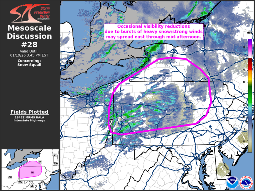 19 Jan US Mesoscale Discussions Storm Prediction Center Mesoscale Discussion 28 Monday, January 19, 2026 at 11:51 am By chris 0 comments Continue reading