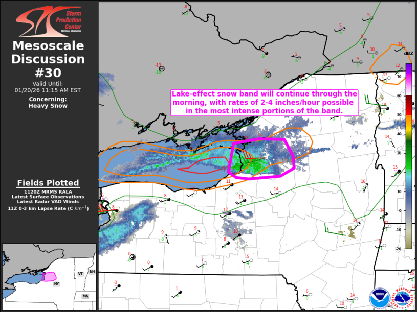 20 Jan US Mesoscale Discussions Storm Prediction Center Mesoscale Discussion 30 Tuesday, January 20, 2026 at 6:24 am By chris 0 comments Continue reading