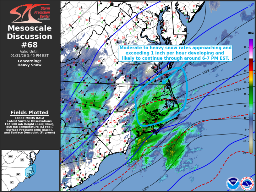 31 Jan US Mesoscale Discussions Storm Prediction Center Mesoscale Discussion 68 Saturday, January 31, 2026 at 1:41 pm By chris 0 comments Continue reading