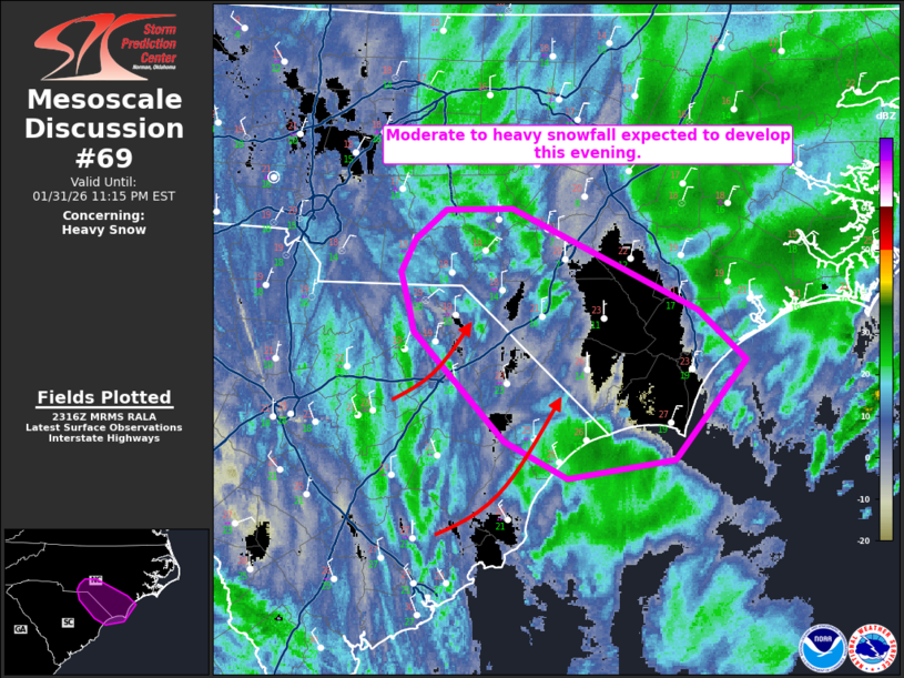 31 Jan US Mesoscale Discussions Storm Prediction Center Mesoscale Discussion 69 Saturday, January 31, 2026 at 6:20 pm By chris 0 comments Continue reading