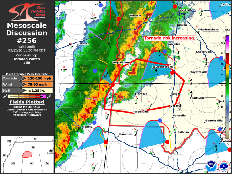 15 Mar US Mesoscale Discussions Storm Prediction Center Mesoscale Discussion 256 Sunday, March 15, 2026 at 11:04 pm By chris 0 comments Continue reading