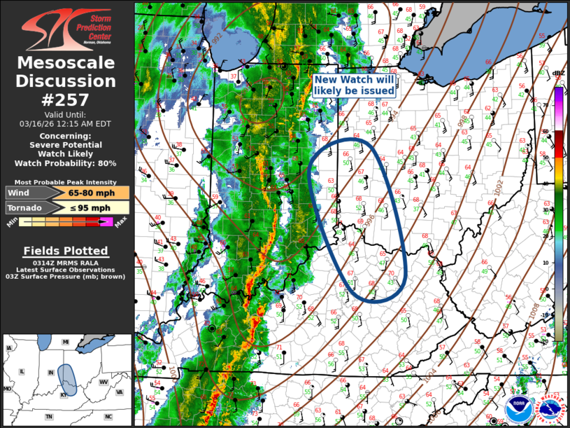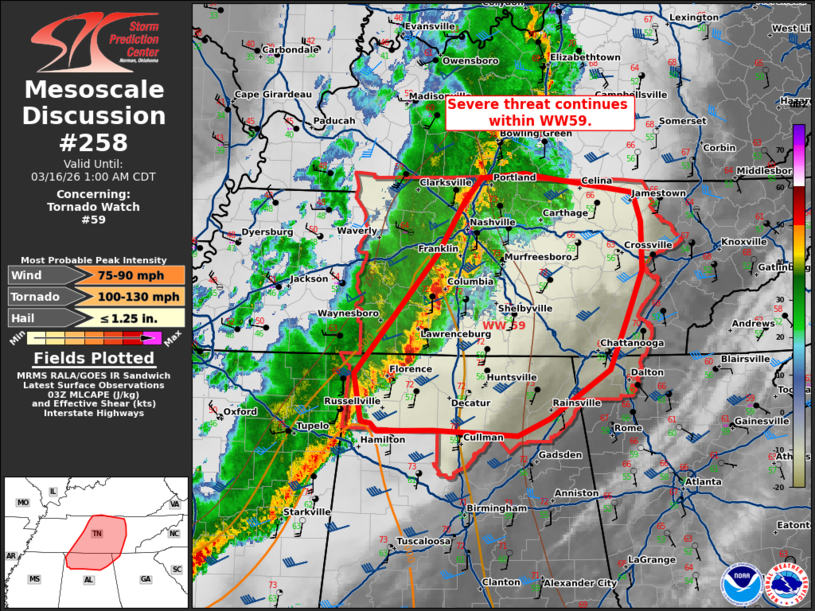 16 Mar US Mesoscale Discussions Storm Prediction Center Mesoscale Discussion 259 Monday, March 16, 2026 at 12:17 am By chris 0 comments Continue reading