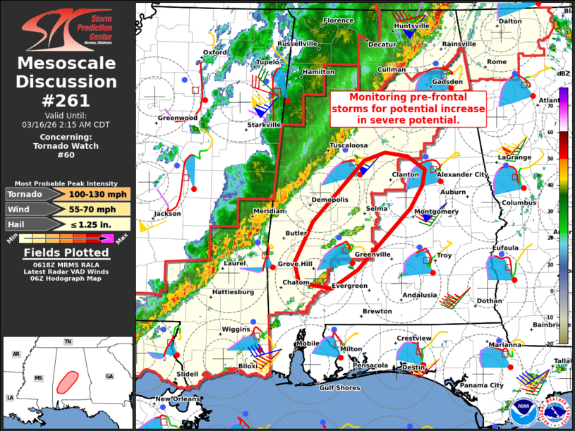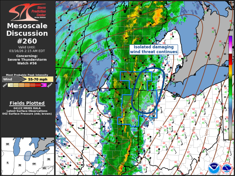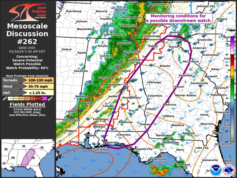 16 Mar US Mesoscale Discussions Storm Prediction Center Mesoscale Discussion 262 Monday, March 16, 2026 at 3:39 am By chris 0 comments Continue reading