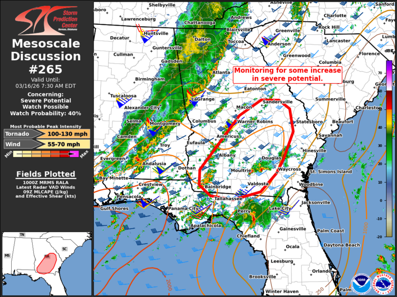 16 Mar US Mesoscale Discussions Storm Prediction Center Mesoscale Discussion 265 Monday, March 16, 2026 at 6:04 am By chris 0 comments Continue reading