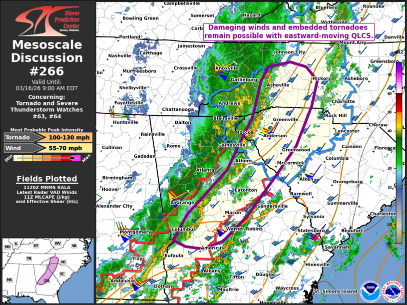 16 Mar US Mesoscale Discussions Storm Prediction Center Mesoscale Discussion 266 Monday, March 16, 2026 at 7:56 am By chris 0 comments Continue reading