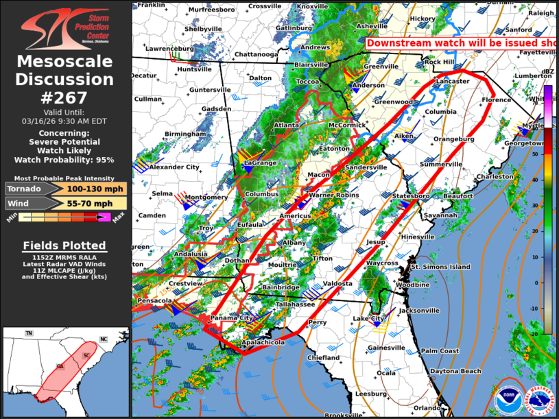 16 Mar US Mesoscale Discussions Storm Prediction Center Mesoscale Discussion 267 Monday, March 16, 2026 at 7:56 am By chris 0 comments Continue reading