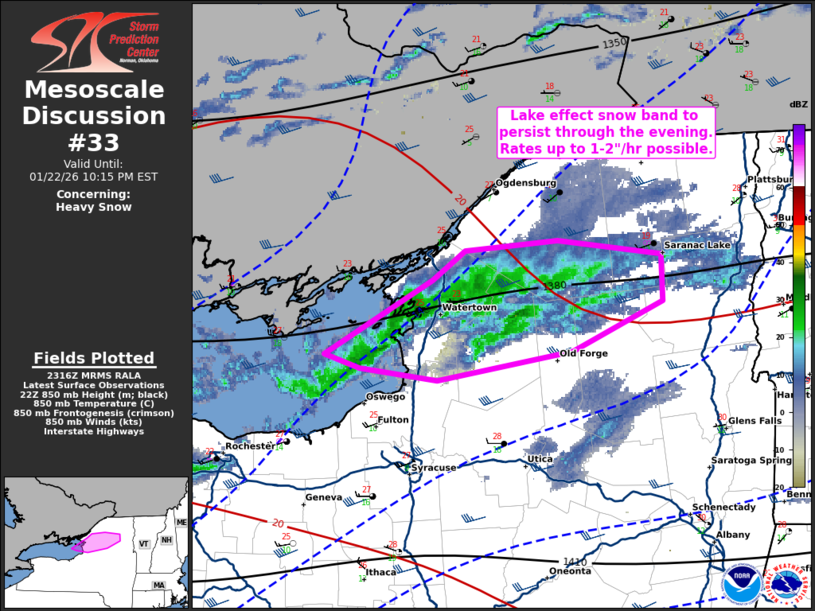 22 Jan US Mesoscale Discussions Storm Prediction Center Mesoscale Discussion 33 Thursday, January 22, 2026 at 6:19 pm By chris 0 comments Continue reading