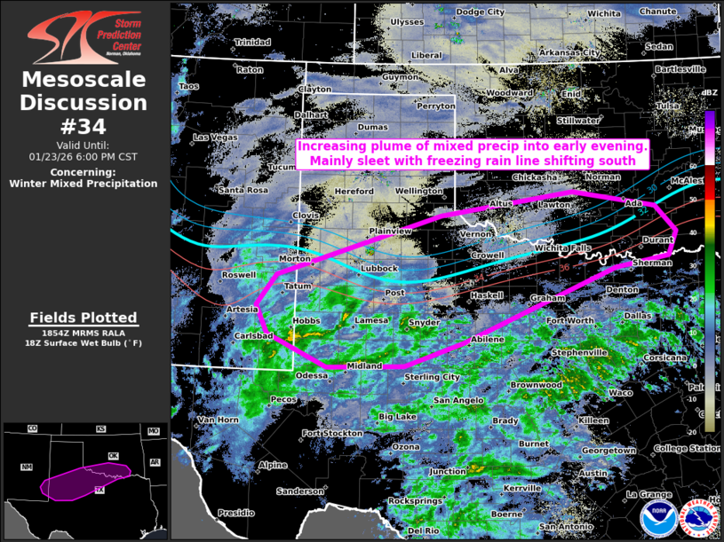 23 Jan US Mesoscale Discussions Storm Prediction Center Mesoscale Discussion 34 Friday, January 23, 2026 at 1:56 pm By chris 0 comments Continue reading