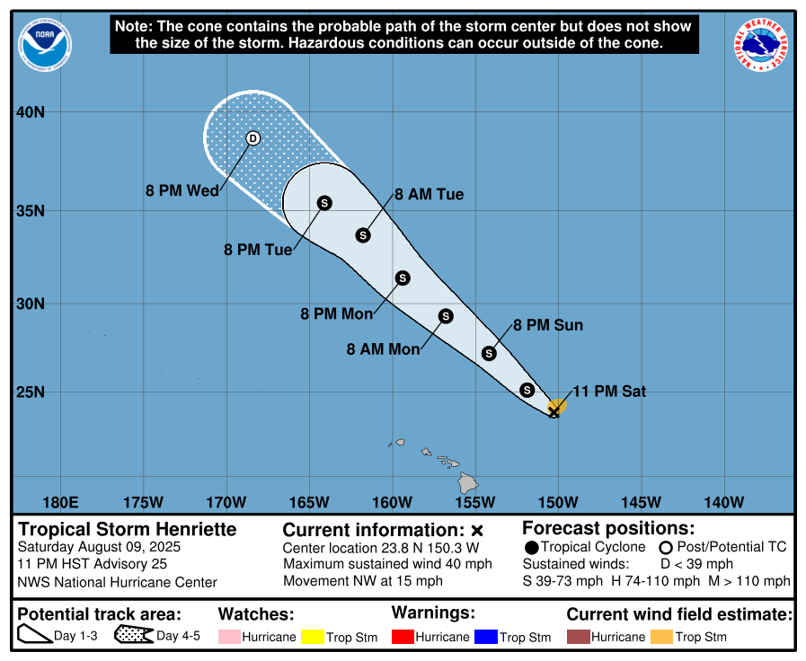 10 Aug Central Pacific Basin Tropical Cyclones TROPICAL STORM HENRIETTE Sunday, August 10, 2025 at 11:22 am By chris 0 comments Continue reading