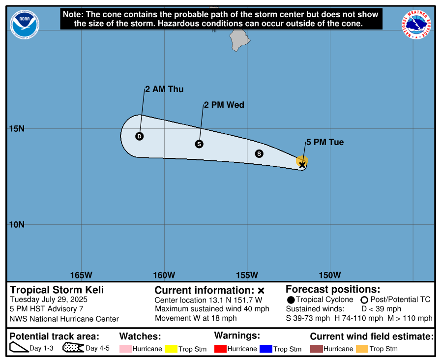 30 Jul Central Pacific Basin Tropical Cyclones Tropical Storm Keli Forecast Discussion Wednesday, July 30, 2025 at 4:43 am By chris 0 comments Continue reading