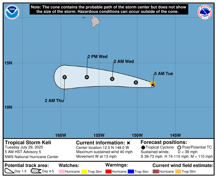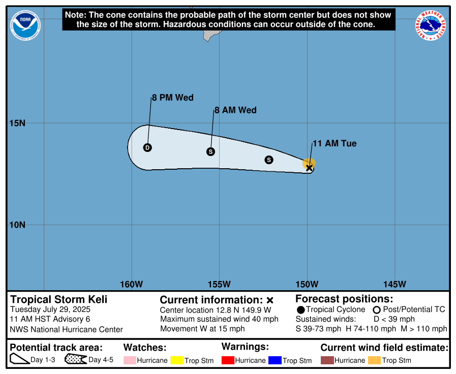 29 Jul Central Pacific Basin Tropical Cyclones Tropical Storm Keli Forecast Discussion Tuesday, July 29, 2025 at 4:37 pm By chris 0 comments Continue reading