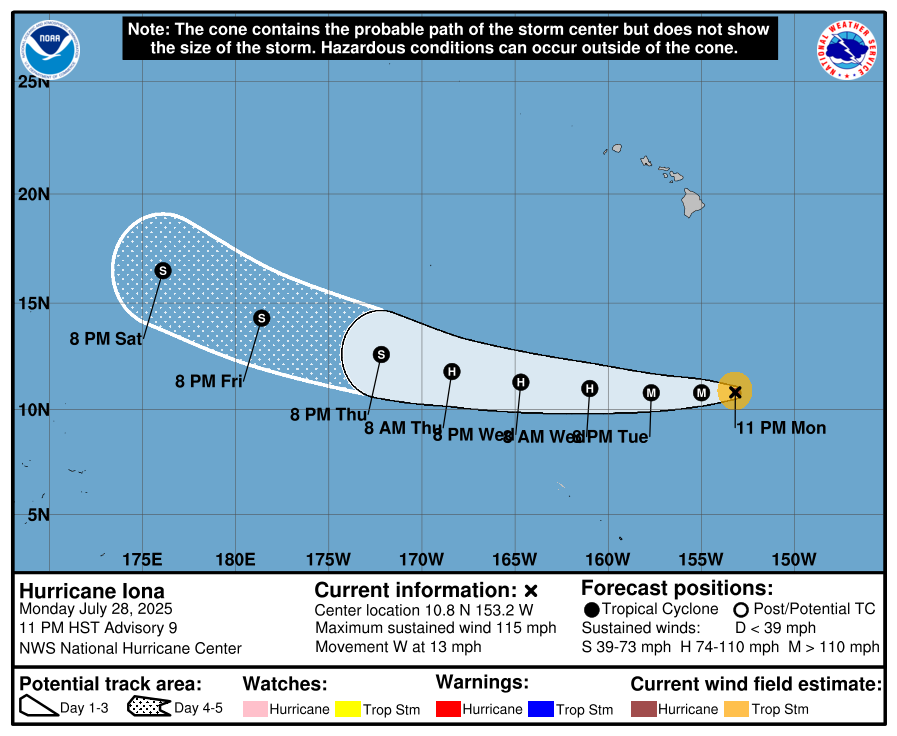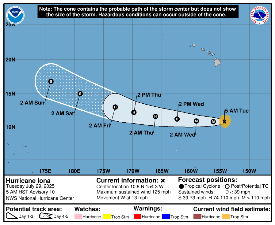 29 Jul Central Pacific Basin Tropical Cyclones Hurricane Iona Forecast Discussion Tuesday, July 29, 2025 at 4:36 am By chris 0 comments Continue reading