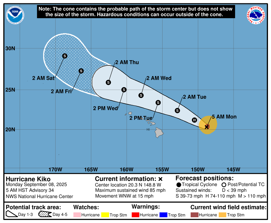08 Sep Central Pacific Basin Tropical Cyclones Hurricane Kiko Forecast Discussion Monday, September 8, 2025 at 10:45 am By chris 0 comments Continue reading