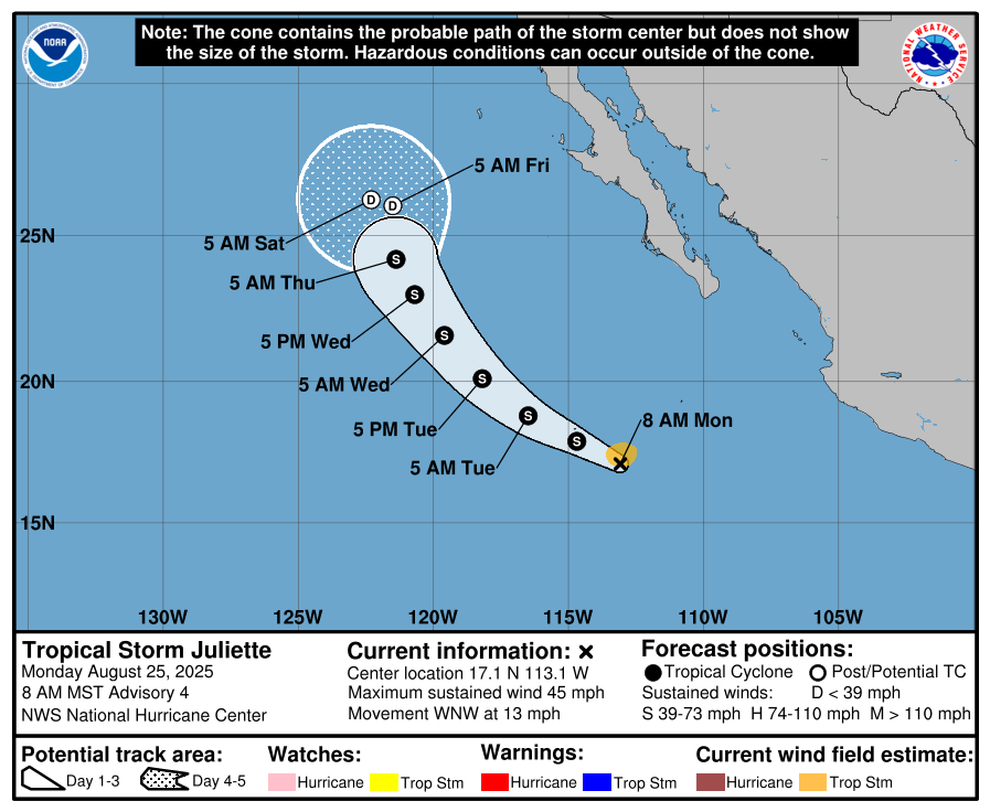 The Eastern Pacifc Basin feed is pulled directly from the National Hurricane Center and updates automatically below. Whenever a tropical cyclone (a tropical depression, tropical storm, or hurricane) or a subtropical storm has formed in the Atlantic or eastern North Pacific, the NOAA National Hurricane Center (NHC) issues tropical cyclone advisory products at least every 6 hours at 5 am, 11 am, 5 pm, and 11 pm EDT.