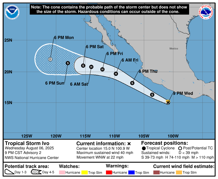 The Eastern Pacifc Basin feed is pulled directly from the National Hurricane Center and updates automatically below. Whenever a tropical cyclone (a tropical depression, tropical storm, or hurricane) or a subtropical storm has formed in the Atlantic or eastern North Pacific, the NOAA National Hurricane Center (NHC) issues tropical cyclone advisory products at least every 6 hours at 5 am, 11 am, 5 pm, and 11 pm EDT.