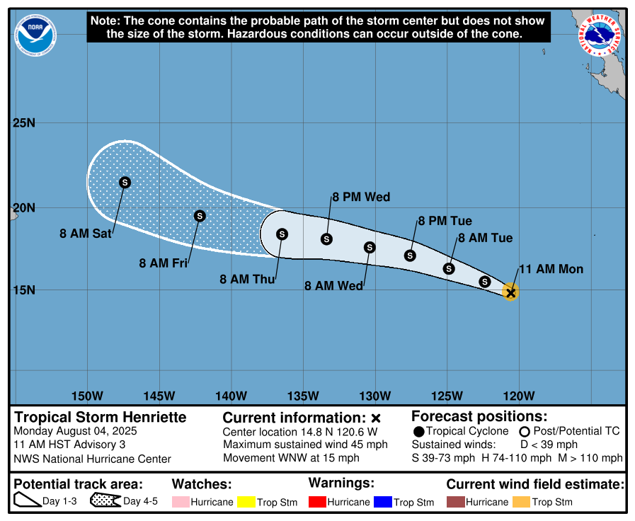 The Eastern Pacifc Basin feed is pulled directly from the National Hurricane Center and updates automatically below. Whenever a tropical cyclone (a tropical depression, tropical storm, or hurricane) or a subtropical storm has formed in the Atlantic or eastern North Pacific, the NOAA National Hurricane Center (NHC) issues tropical cyclone advisory products at least every 6 hours at 5 am, 11 am, 5 pm, and 11 pm EDT.