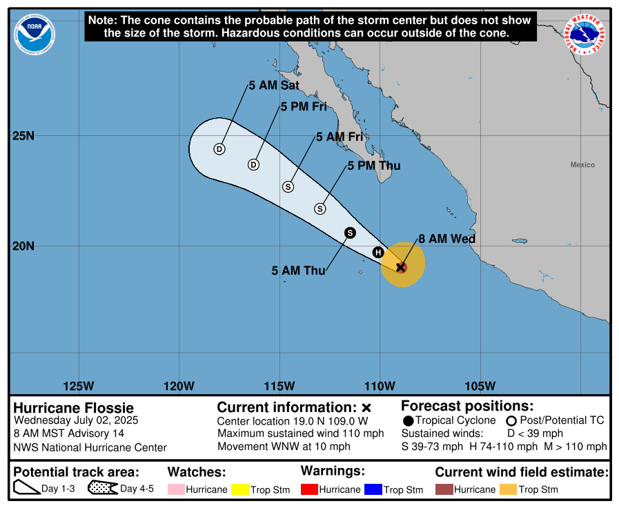 The Eastern Pacifc Basin feed is pulled directly from the National Hurricane Center and updates automatically below. Whenever a tropical cyclone (a tropical depression, tropical storm, or hurricane) or a subtropical storm has formed in the Atlantic or eastern North Pacific, the NOAA National Hurricane Center (NHC) issues tropical cyclone advisory products at least every 6 hours at 5 am, 11 am, 5 pm, and 11 pm EDT.