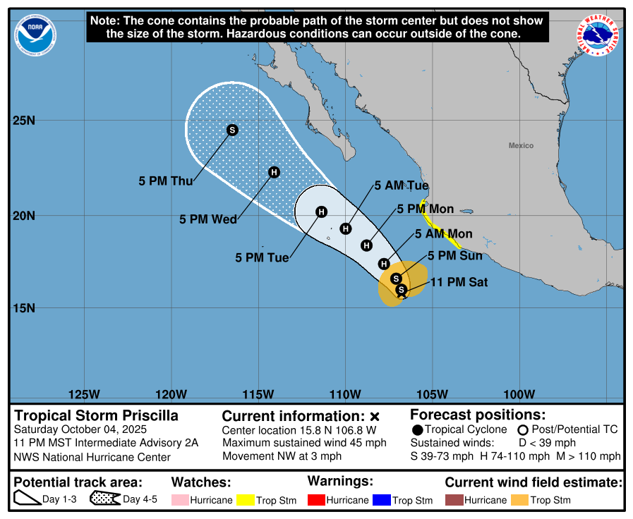 The Eastern Pacifc Basin feed is pulled directly from the National Hurricane Center and updates automatically below. Whenever a tropical cyclone (a tropical depression, tropical storm, or hurricane) or a subtropical storm has formed in the Atlantic or eastern North Pacific, the NOAA National Hurricane Center (NHC) issues tropical cyclone advisory products at least every 6 hours at 5 am, 11 am, 5 pm, and 11 pm EDT.