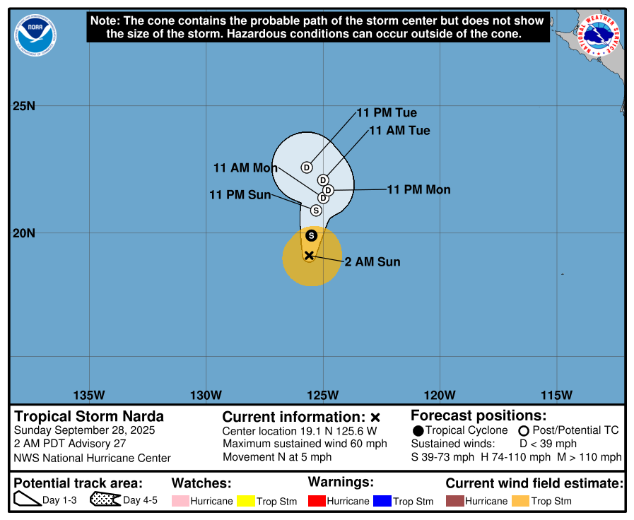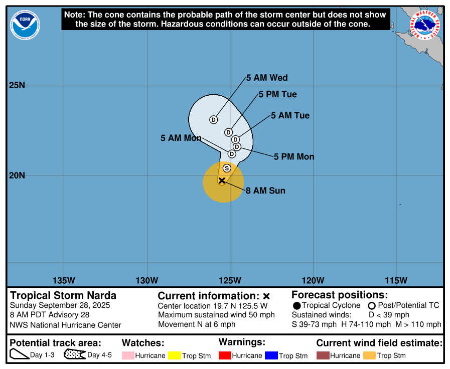 The Eastern Pacifc Basin feed is pulled directly from the National Hurricane Center and updates automatically below. Whenever a tropical cyclone (a tropical depression, tropical storm, or hurricane) or a subtropical storm has formed in the Atlantic or eastern North Pacific, the NOAA National Hurricane Center (NHC) issues tropical cyclone advisory products at least every 6 hours at 5 am, 11 am, 5 pm, and 11 pm EDT.