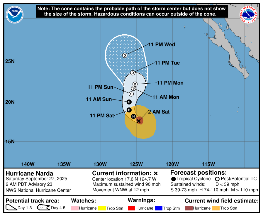 The Eastern Pacifc Basin feed is pulled directly from the National Hurricane Center and updates automatically below. Whenever a tropical cyclone (a tropical depression, tropical storm, or hurricane) or a subtropical storm has formed in the Atlantic or eastern North Pacific, the NOAA National Hurricane Center (NHC) issues tropical cyclone advisory products at least every 6 hours at 5 am, 11 am, 5 pm, and 11 pm EDT.
