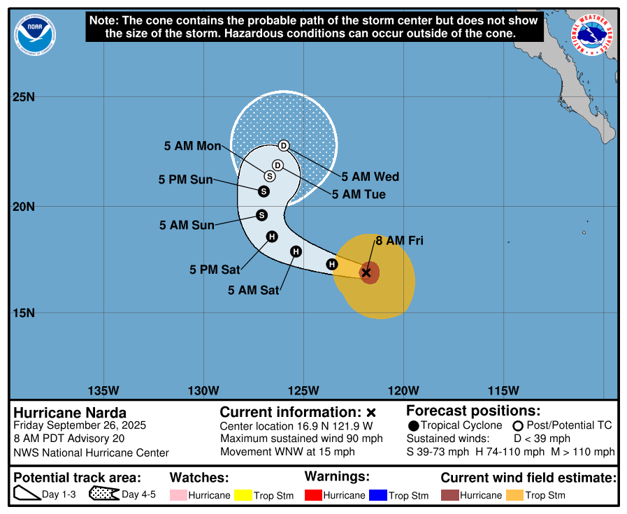 The Eastern Pacifc Basin feed is pulled directly from the National Hurricane Center and updates automatically below. Whenever a tropical cyclone (a tropical depression, tropical storm, or hurricane) or a subtropical storm has formed in the Atlantic or eastern North Pacific, the NOAA National Hurricane Center (NHC) issues tropical cyclone advisory products at least every 6 hours at 5 am, 11 am, 5 pm, and 11 pm EDT.