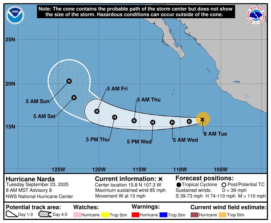 The Eastern Pacifc Basin feed is pulled directly from the National Hurricane Center and updates automatically below. Whenever a tropical cyclone (a tropical depression, tropical storm, or hurricane) or a subtropical storm has formed in the Atlantic or eastern North Pacific, the NOAA National Hurricane Center (NHC) issues tropical cyclone advisory products at least every 6 hours at 5 am, 11 am, 5 pm, and 11 pm EDT.