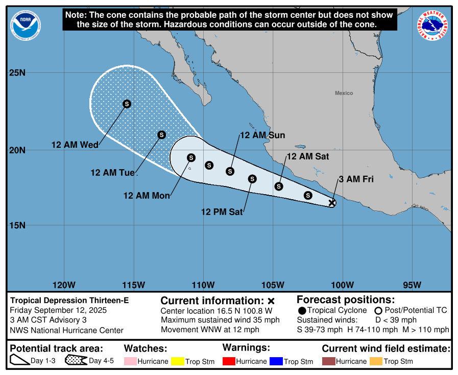 The Eastern Pacifc Basin feed is pulled directly from the National Hurricane Center and updates automatically below. Whenever a tropical cyclone (a tropical depression, tropical storm, or hurricane) or a subtropical storm has formed in the Atlantic or eastern North Pacific, the NOAA National Hurricane Center (NHC) issues tropical cyclone advisory products at least every 6 hours at 5 am, 11 am, 5 pm, and 11 pm EDT.
