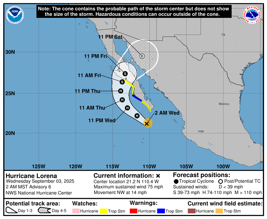 The Eastern Pacifc Basin feed is pulled directly from the National Hurricane Center and updates automatically below. Whenever a tropical cyclone (a tropical depression, tropical storm, or hurricane) or a subtropical storm has formed in the Atlantic or eastern North Pacific, the NOAA National Hurricane Center (NHC) issues tropical cyclone advisory products at least every 6 hours at 5 am, 11 am, 5 pm, and 11 pm EDT.