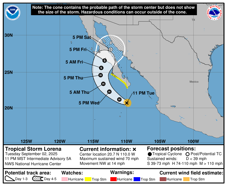 The Eastern Pacifc Basin feed is pulled directly from the National Hurricane Center and updates automatically below. Whenever a tropical cyclone (a tropical depression, tropical storm, or hurricane) or a subtropical storm has formed in the Atlantic or eastern North Pacific, the NOAA National Hurricane Center (NHC) issues tropical cyclone advisory products at least every 6 hours at 5 am, 11 am, 5 pm, and 11 pm EDT.