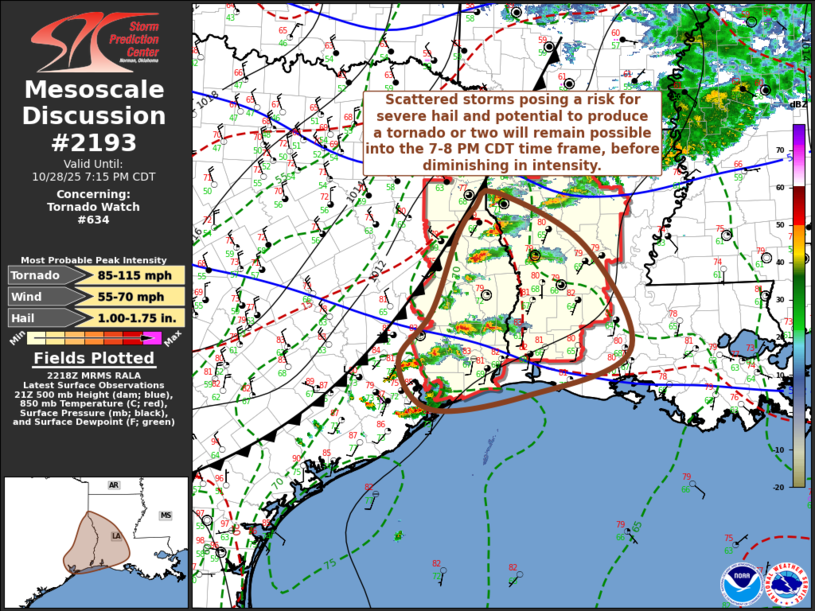 Mesoscale discussion forecasters compose concise short-term guidance messages called Mesoscale Discussions (MDs) that address areas of current or expected hazardous weather. Discussions areas are automatically populated in the entries below with detailed forecast information,