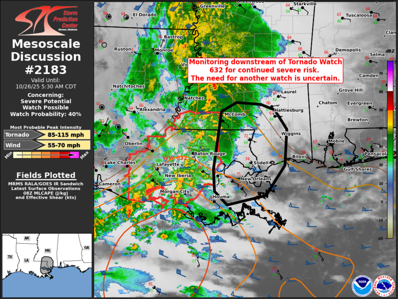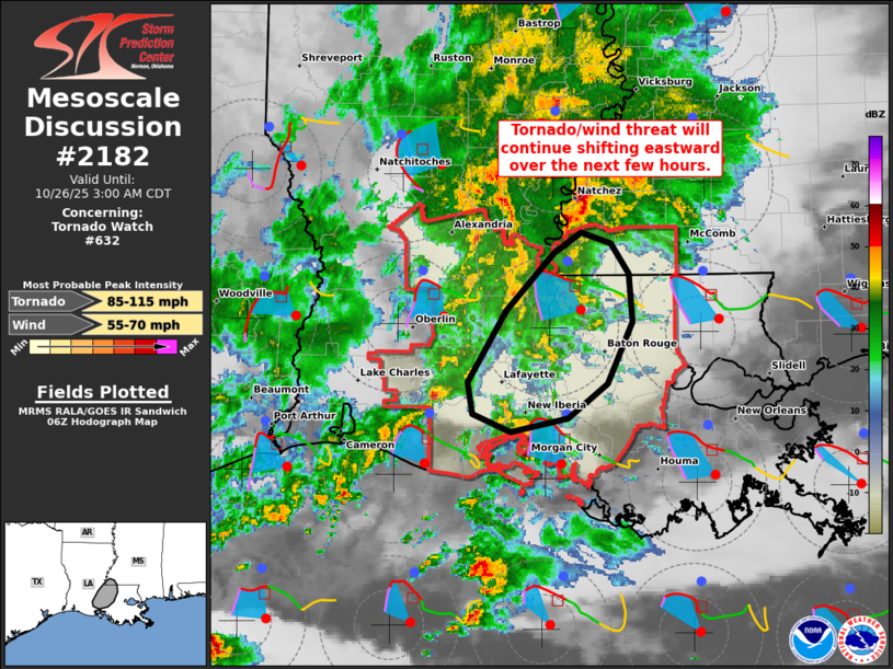 Mesoscale discussion forecasters compose concise short-term guidance messages called Mesoscale Discussions (MDs) that address areas of current or expected hazardous weather. Discussions areas are automatically populated in the entries below with detailed forecast information,