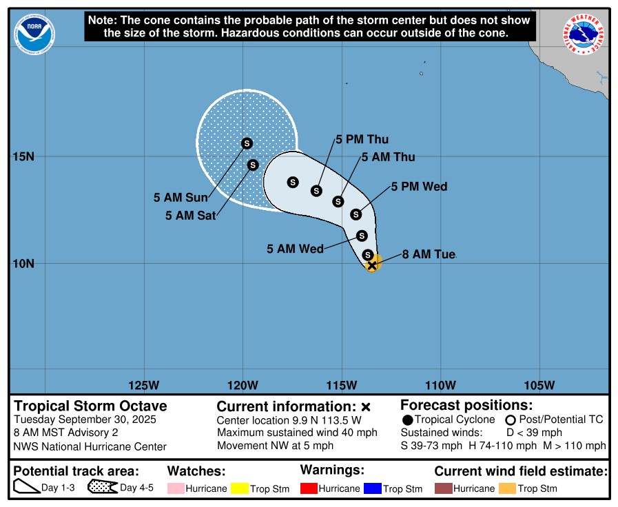 Coastal Watches/Warnings and Forecast Cone for Storm Center