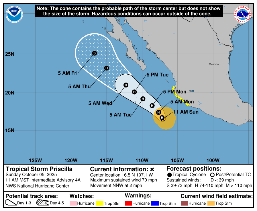 Coastal Watches/Warnings and Forecast Cone for Storm Center