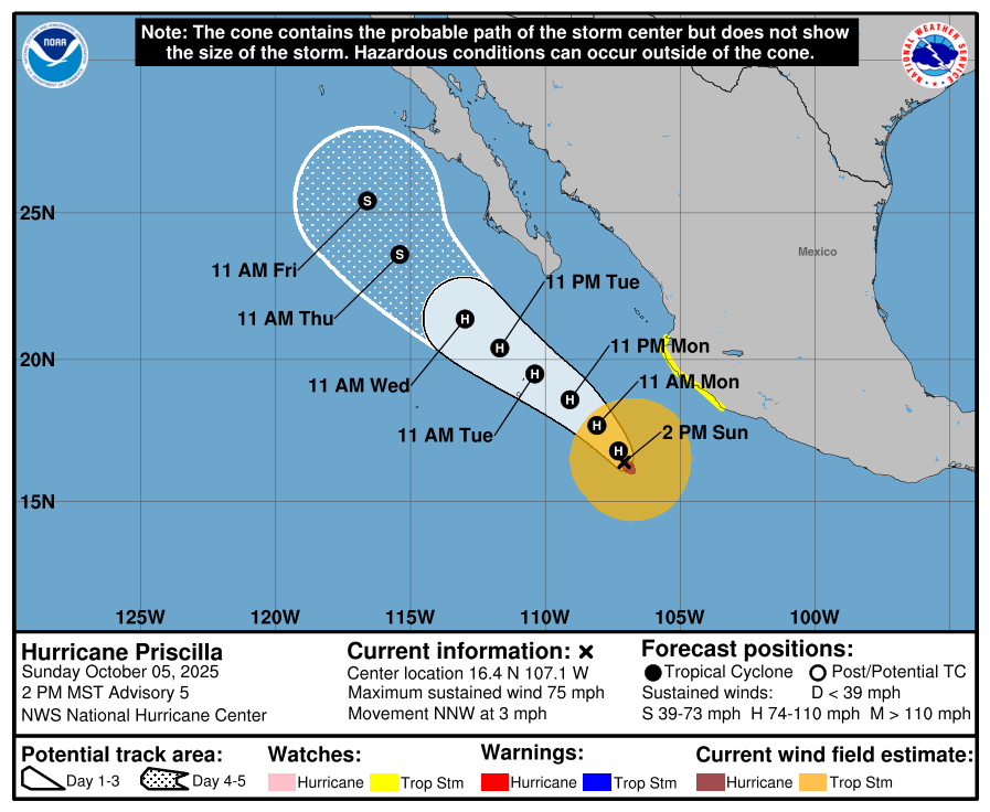 Coastal Watches/Warnings and Forecast Cone for Storm Center
