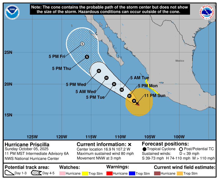 Coastal Watches/Warnings and Forecast Cone for Storm Center