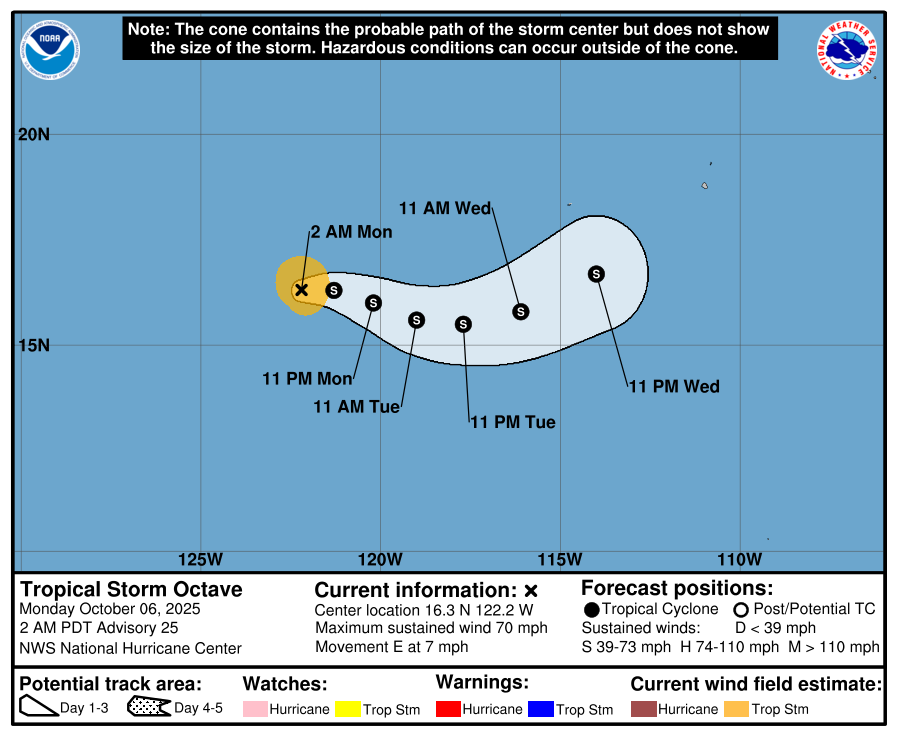 Coastal Watches/Warnings and Forecast Cone for Storm Center
