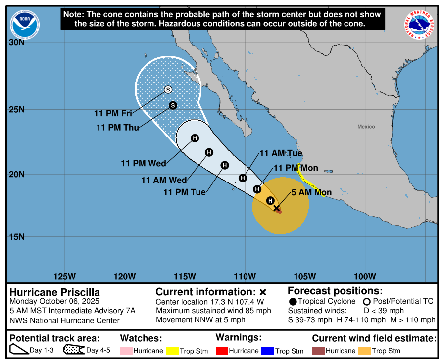 Coastal Watches/Warnings and Forecast Cone for Storm Center