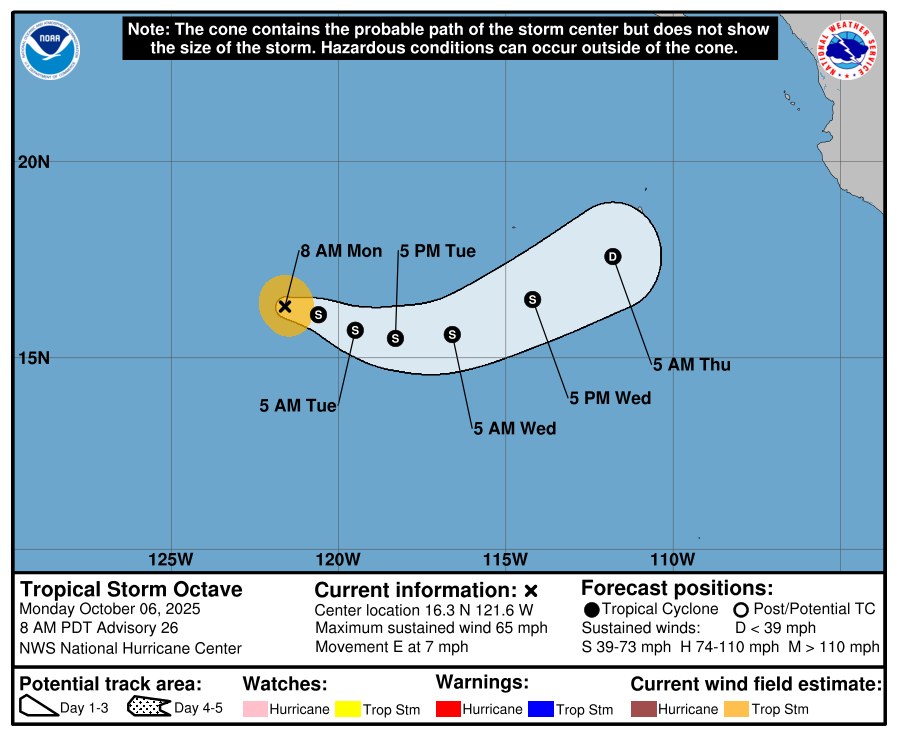 Coastal Watches/Warnings and Forecast Cone for Storm Center