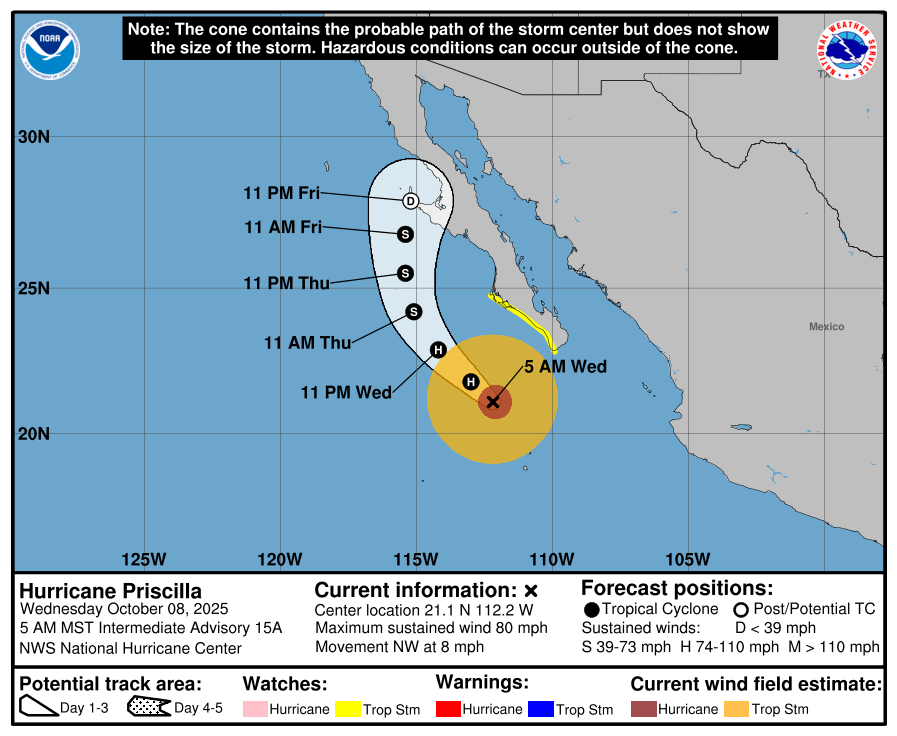 Coastal Watches/Warnings and Forecast Cone for Storm Center