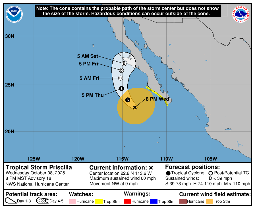Coastal Watches/Warnings and Forecast Cone for Storm Center