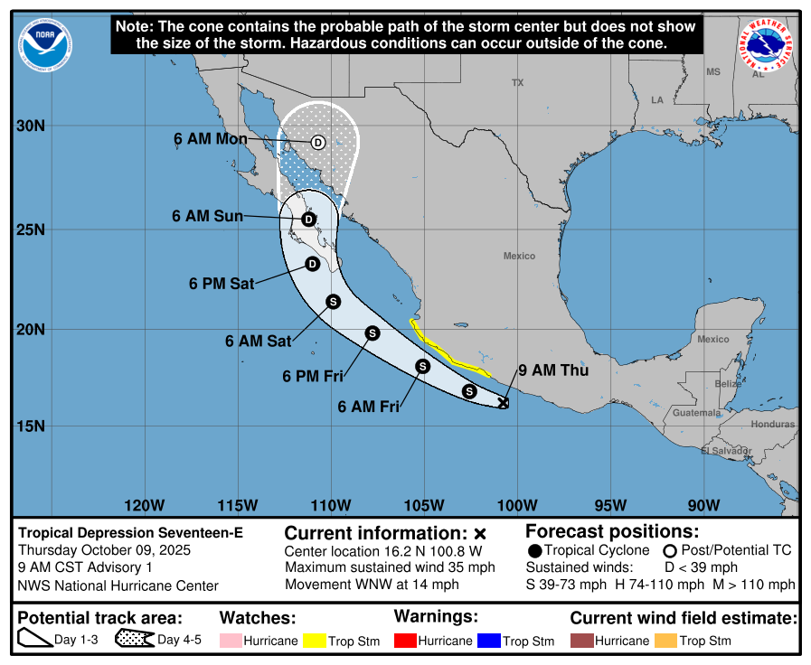 Coastal Watches/Warnings and Forecast Cone for Storm Center