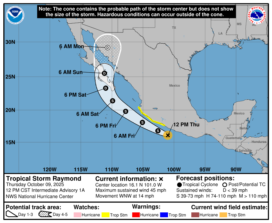 Coastal Watches/Warnings and Forecast Cone for Storm Center