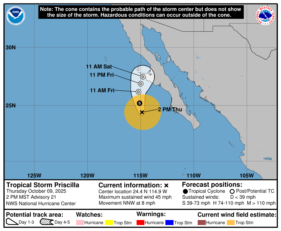 Coastal Watches/Warnings and Forecast Cone for Storm Center
