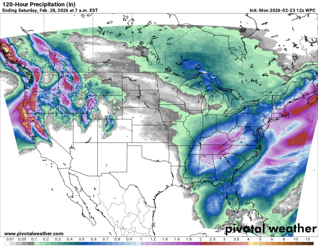 Meanwhile, the tail end of that storm is going to become the next Eastern U.S. storm by later in the week. Right now, it appears this will primarily be a locally heavy rainmaker in the Southeast, but there has been some back and forth in model guidance as to whether or not the storm could carry a wintry component on the northern fringe. This was aiming along I-90 on Sunday morning, but model guidance has mostly lost it at this point. Some of that uncertainty is likely due to the typical issues in predicting exact trajectories and intensities of West Coast storm systems. This tends to happen at times, and it’s one reason why we don’t usually get super excited more than 3 days out ahead of a winter event.