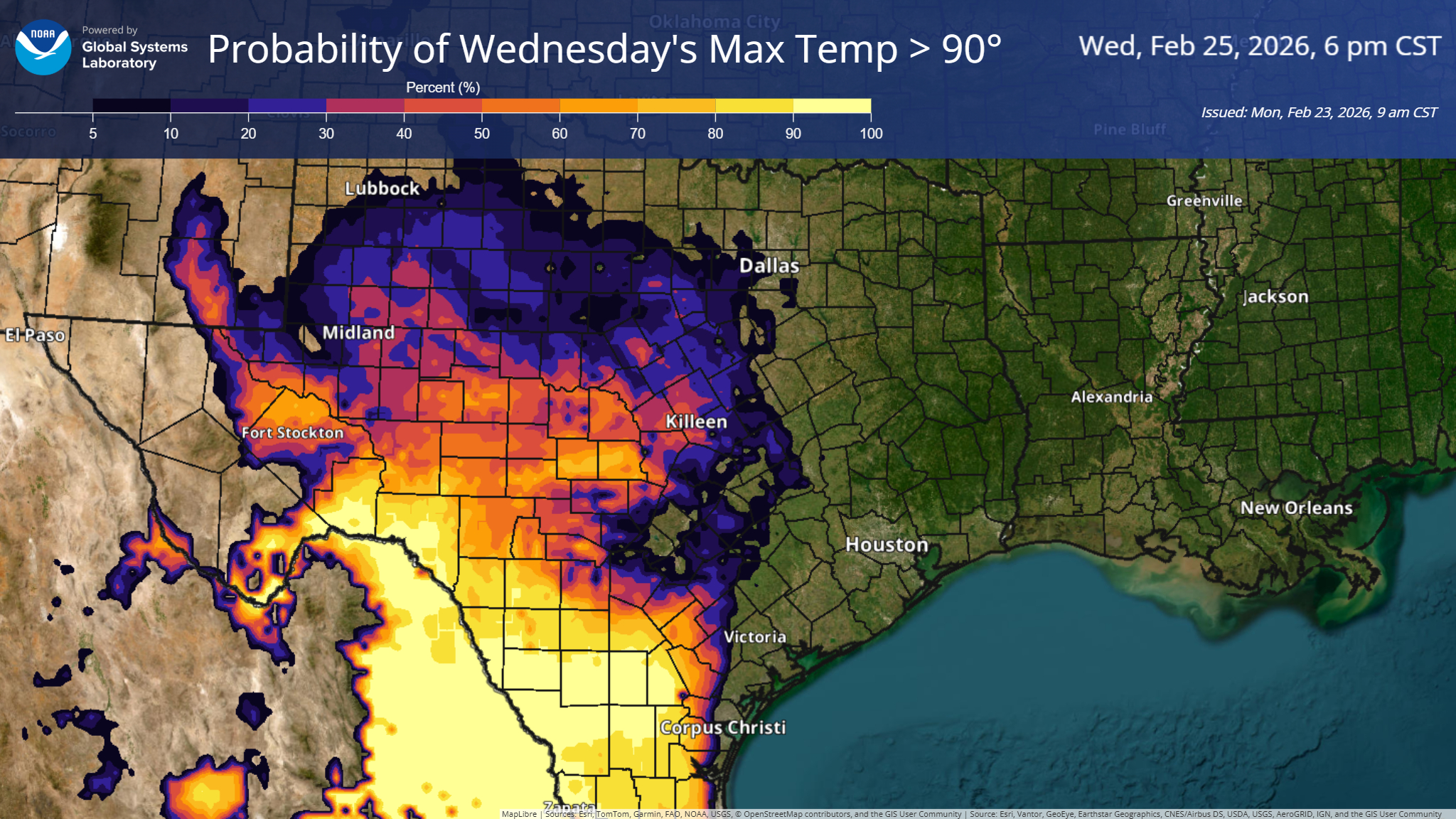 Meanwhile, the biggest question may be if one of the Texas triangle cities (Dallas, Austin, San Antonio, Houston) can hit 90 degrees first and if so, who might it be? The leader in the clubhouse right now is Austin (Bergstrom) which hit 89 degrees on January 2nd. Forecast highs this week are expected to top off in the mid 80s in most of the larger cities. Corpus Christi has a shot to do so on Thursday, and much of the Rio Grande Valley will hit 90+ on Wednesday.