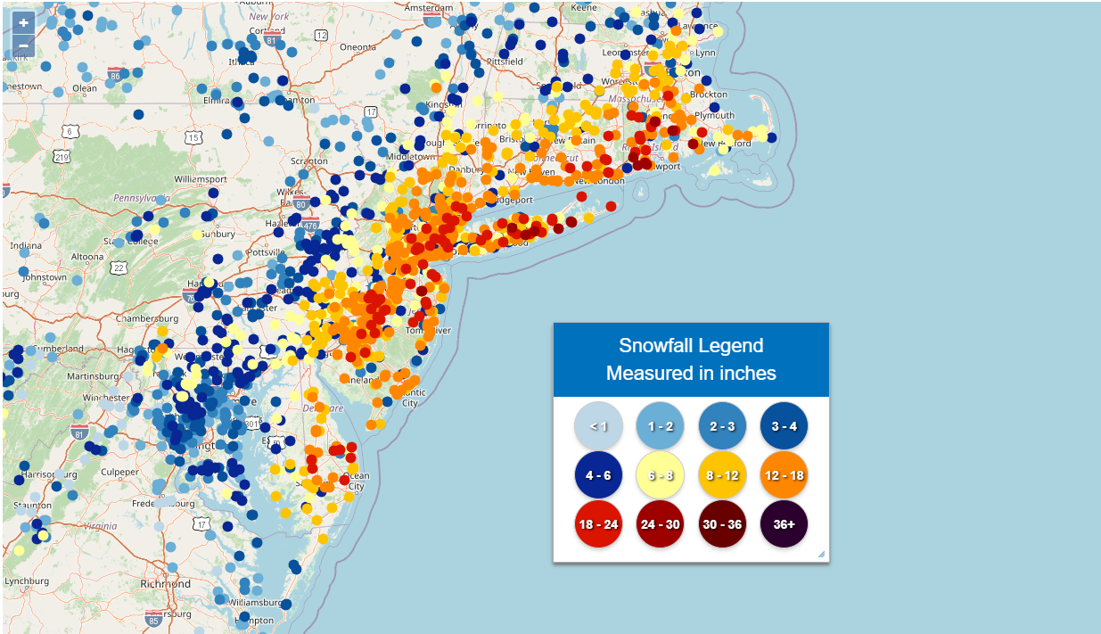 The East Coast blizzard will exit today, but as of this morning, we’ve got numerous reports.